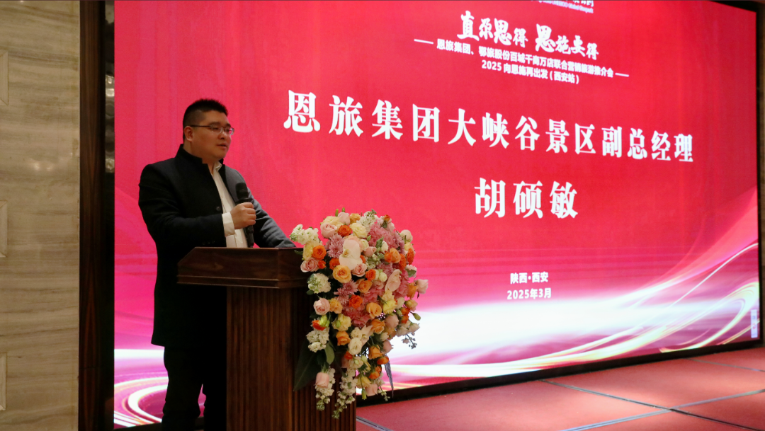 西安推介會(huì)上,恩旅集團(tuán)大峽谷景區(qū)副總經(jīng)理胡碩敏向來自陜西的兩百多名旅行商代表介紹了恩旅集團(tuán)在推動(dòng)文旅融合、提升旅游服務(wù)質(zhì)量方面的決心和成果。他表示:過去一年,恩施旅游集團(tuán)斬獲龍雀獎(jiǎng)“最具成長性文旅集團(tuán)”大獎(jiǎng),全年接待游客突破千萬人次,大峽谷景區(qū)游客接待量首次突破200萬人,創(chuàng)歷史新高。在新的一年,恩旅集團(tuán)將深耕文旅產(chǎn)業(yè)、持續(xù)創(chuàng)新發(fā)力,助力打造恩施世界知名旅游目的地,持續(xù)推動(dòng)文旅融合、體旅融合、康旅融合、IP融合,不斷擦亮景區(qū)品牌、不斷提升服務(wù)品質(zhì)、不斷投建煥新項(xiàng)目。