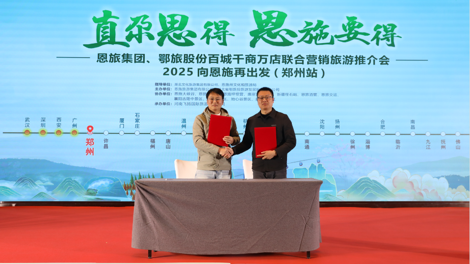 推介會上,恩施旅游推介官借助精美宣傳片繪聲繪色地講解了恩施的自然風(fēng)光、人文風(fēng)情和特色美食。襄陽古隆中、恩施騰龍洞、地心谷、鹿院坪景區(qū)也向河南的旅游企業(yè)及媒體進行了生動推介。會上,恩旅集團與承辦方旅行社達成資源共享、信息互通、合作共贏的戰(zhàn)略合作。