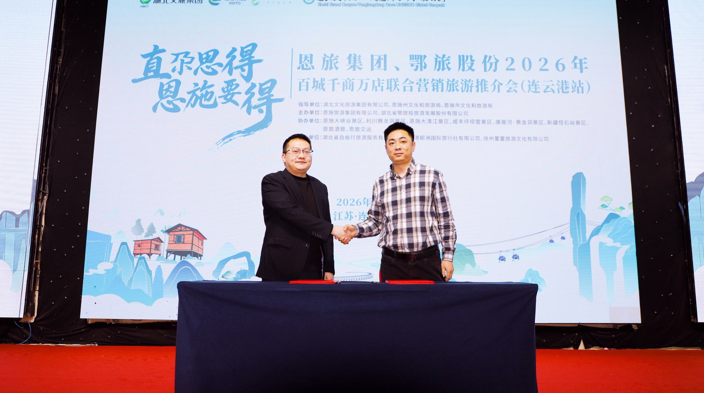 文旅推介環(huán)節(jié),恩施大峽谷的雄偉、大清江的靈秀、坪壩營(yíng)的清新、唐崖河·黃金洞的地質(zhì)奇觀贏得陣陣掌聲。現(xiàn)場(chǎng),恩旅集團(tuán)與連云港渠道合作伙伴簽署戰(zhàn)略合作協(xié)議,雙方將圍繞客源互送、產(chǎn)品開發(fā)等開展深度合作。