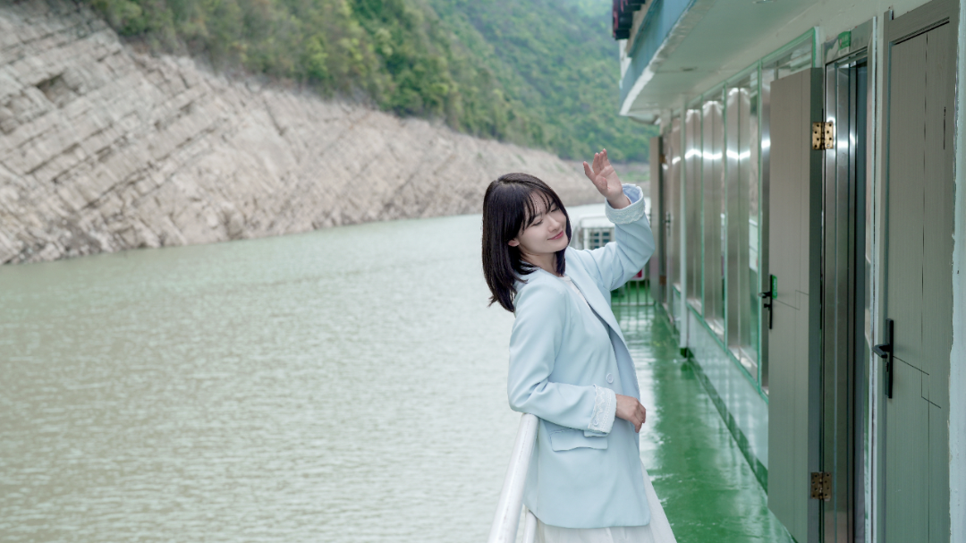 當日下午,采風團乘游船從碼頭出發(fā)。游船破開碧波,兩岸峰巒疊翠,蔥郁山林與古樸巖壁交相輝映。大V們紛紛憑欄遠眺,用鏡頭記錄清江的靈秀風光。身著土苗盛裝的姑娘們彩衣翩躚,銀飾叮當,為行程增添了濃郁的民族風情。途中,大家手持“直尕思得 恩施要得”趣味手牌,用最地道的鄉(xiāng)音為恩施打call,將現(xiàn)場氛圍推向高潮。