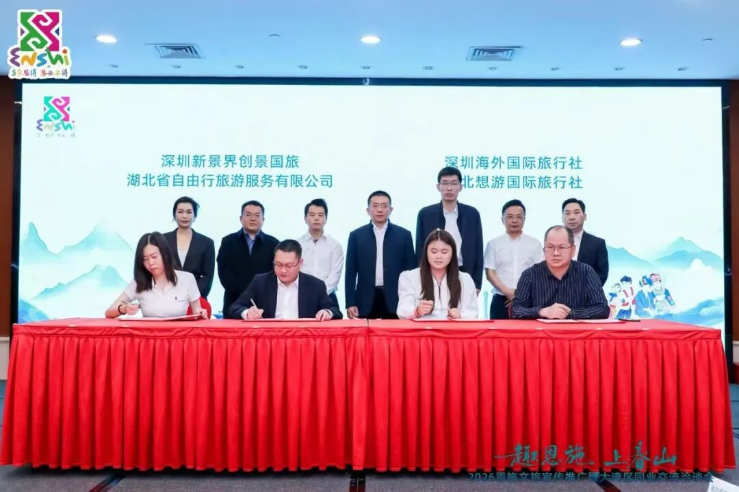 現(xiàn)場(chǎng),恩旅集團(tuán)營(yíng)銷公司副總經(jīng)理?xiàng)蠲麂h與深圳新景界創(chuàng)景國(guó)旅簽署戰(zhàn)略合作協(xié)議,雙方將在客源互送、線路共建、聯(lián)合營(yíng)銷、品牌推廣四大核心領(lǐng)域開(kāi)展全方位深度合作,打通客源輸送通道,打造精品旅游線路,實(shí)現(xiàn)資源共享、優(yōu)勢(shì)互補(bǔ),切實(shí)推動(dòng)“引客入恩”工作落地見(jiàn)效。