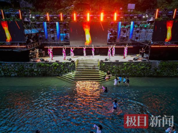 為了讓游客“白天玩不夠,晚上不想走”,景區(qū)還創(chuàng)新推出“電音潑水節(jié)”。唐崖河畔搭起DJ臺(tái),動(dòng)感音樂一響,游客們拿起水槍、水瓢加入潑水大戰(zhàn),聲浪與水花交織成夏夜的歡樂圖景。這一活動(dòng)不僅填補(bǔ)了景區(qū)夜游空白,還帶動(dòng)了周邊餐飲、住宿消費(fèi),成功打造“日漂夜玩”的全時(shí)段體驗(yàn)?zāi)J?,不少游客直言“玩一天根本不夠”?/p>