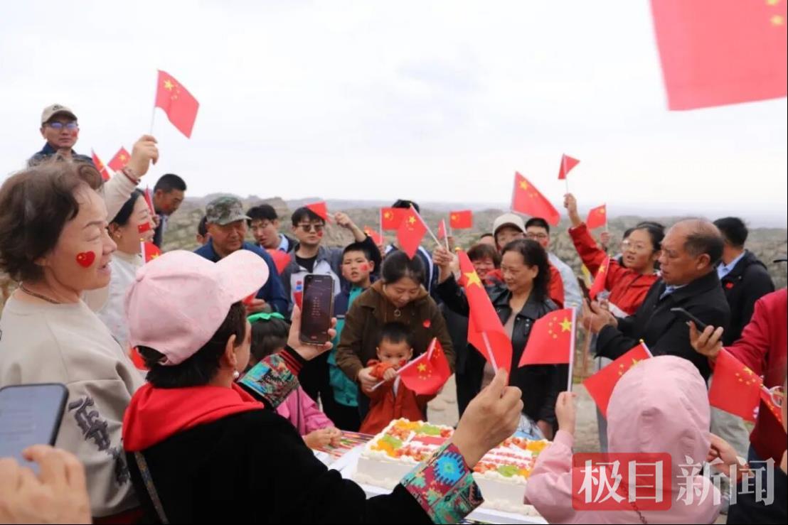 位于祖國西北邊陲的新疆怪石峪景區(qū),則以一場富有意義的登山活動為祖國慶生?!拔以谧鎳钗鞅睘樽鎳鴳c生”登山活動吸引了眾多游客參與。隊伍從塔斯廣場出發(fā),沿著景觀步道向山頂進發(fā)。成功抵達北苑觀景臺后,游客們面對壯麗山川,齊聲高唱《歌唱祖國》,并分享了特制的節(jié)日蛋糕,“祖國萬歲”的真誠吶喊在山谷間激蕩回響。登山途中,景區(qū)精心設置的多個“與國旗同框”打卡點也深受游客喜愛,人們紛紛在此駐足,留下與國旗同框的珍貴合影。