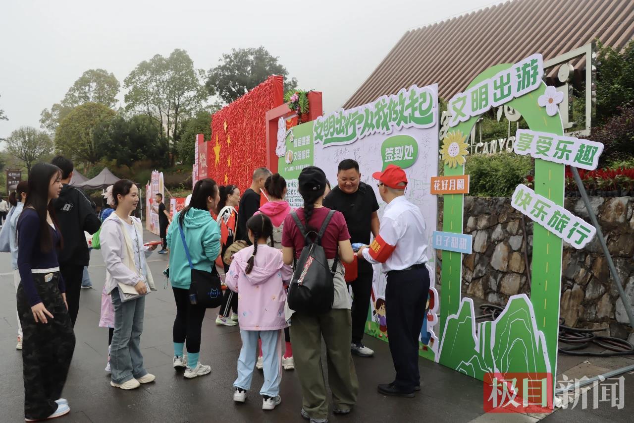 “峽谷小新”團隊同時承擔著志愿服務的工作。在景區(qū)游客中心的“峽谷小新志愿服務崗”,抽屜里常年備著創(chuàng)可貼、速效救心丸和手繪的景區(qū)路線圖。在游客集中疏散的點位,總有“峽谷小新”們?yōu)橛慰退蜕霞t糖水、零食,緩解登山的疲憊。