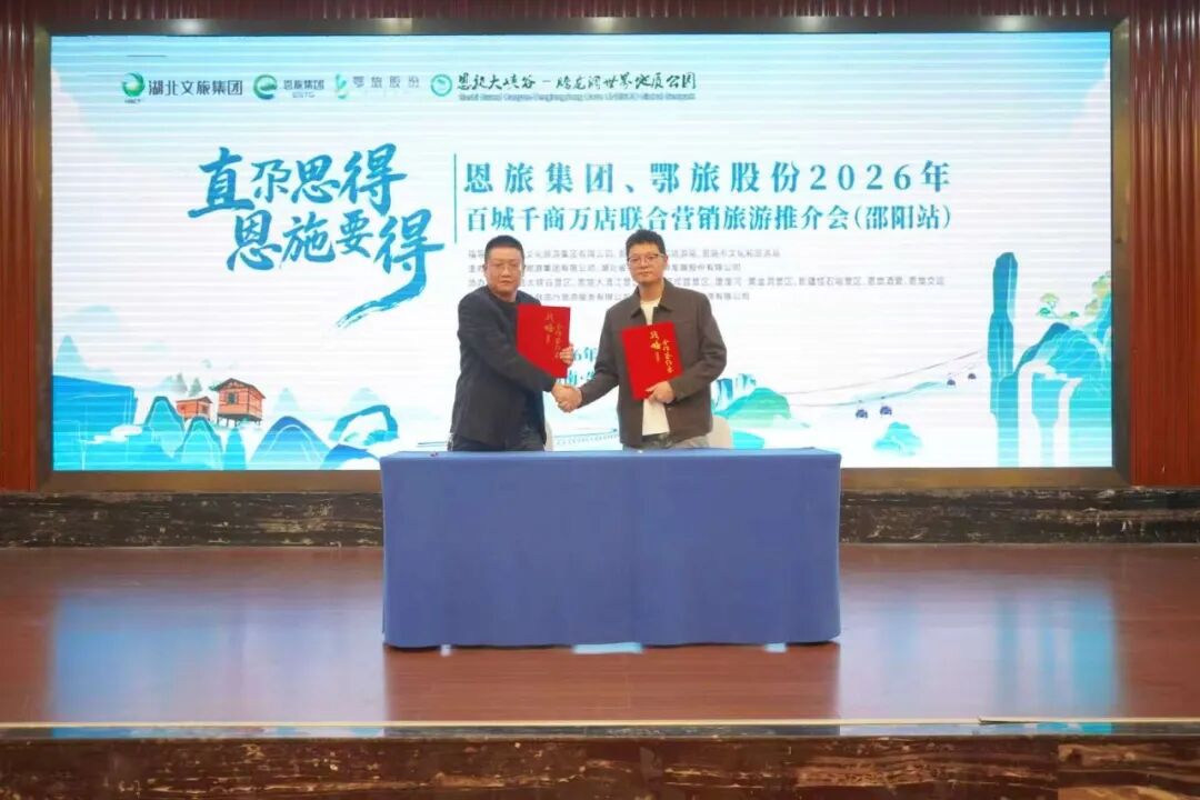4月1日,恩旅集團(tuán)、鄂旅股份“直尕思得 恩施要得”主題旅游推介會(huì)在湖南邵陽隆重舉行。邵陽市文旅部門、旅行社代表及媒體嘉賓齊聚一堂,共話文旅合作,共推恩施山水秘境。