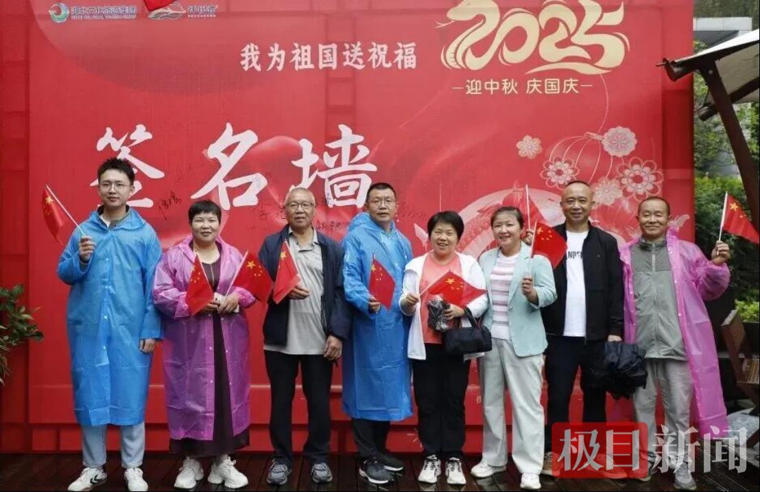 景區(qū)入口處,“我為祖國送祝福”簽名墻前排起長隊,游客們欣然提筆,留下一句句真摯祝福,現(xiàn)場洋溢著熱烈而溫馨的節(jié)日氣息。