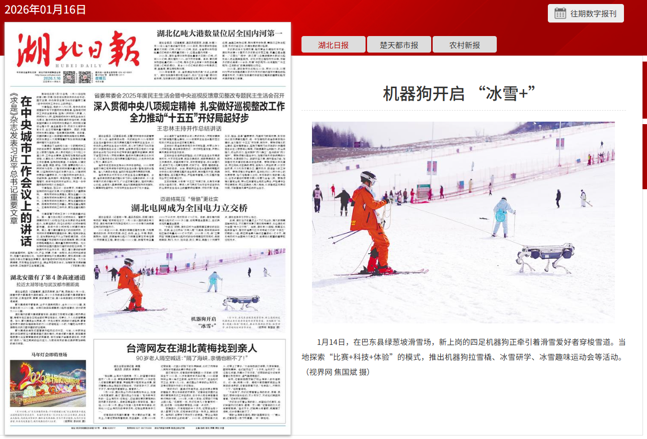 近日,鄂旅股份酷馳科技攜機(jī)器狗“天團(tuán)”到巴東縣綠蔥坡滑雪場(chǎng)試用“上崗”,這群可愛的智能設(shè)備,在雪道上靈活牽引滑雪愛好者穿梭、為游客運(yùn)送雪板、和游客招手互動(dòng),成為冰雪世界中一道獨(dú)特的科技風(fēng)景線,吸引游客紛紛駐足互動(dòng)合影,并受到央視媒體和湖北日?qǐng)?bào)的報(bào)道關(guān)注。