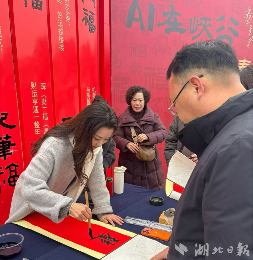 八匹靈動可愛的機(jī)械小馬亮相廣場,熱情迎賓,游客可領(lǐng)取專屬“福游指南”,開啟福氣滿滿的峽谷新春之旅。更有無人機(jī)福運空投,在“十全十美”的吉時為游客送上“福從天降”的驚喜,讓祥瑞啟序、福暖先至。土家山神NPC巡游派發(fā)mini福袋,網(wǎng)紅書法達(dá)人現(xiàn)場揮毫?xí)鴮懘郝?lián),把新春祝福送到游客手中。