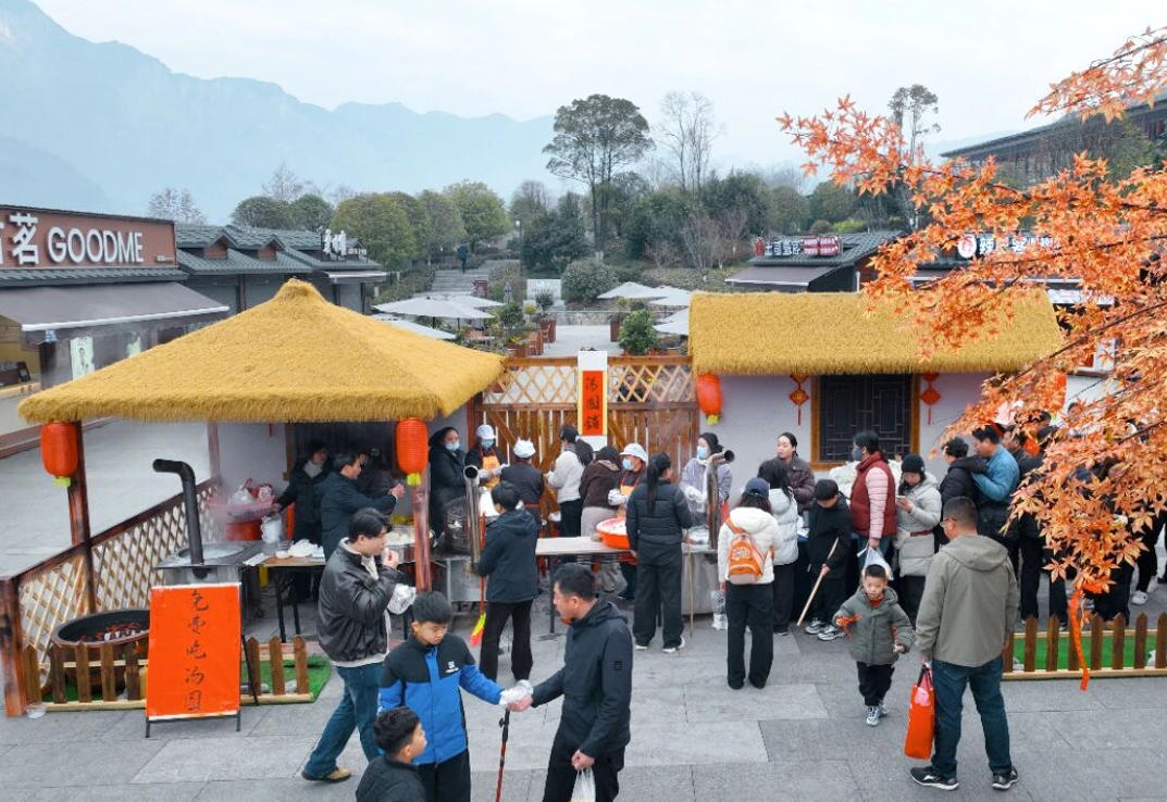 節(jié)日期間,恩施大峽谷張燈結(jié)彩、喜氣盈門。土家擺手舞、舞龍舞獅、原生態(tài)山歌等民俗展演輪番上演,民族風(fēng)情濃郁,年味兒十足。馬年主題機(jī)器馬互動(dòng)表演新穎有趣,成為景區(qū)熱門打卡點(diǎn),吸引游客駐足觀賞、互動(dòng)留念。景區(qū)還為游客送上熱氣騰騰的免費(fèi)湯圓,以暖心服務(wù)傳遞新春溫情。
