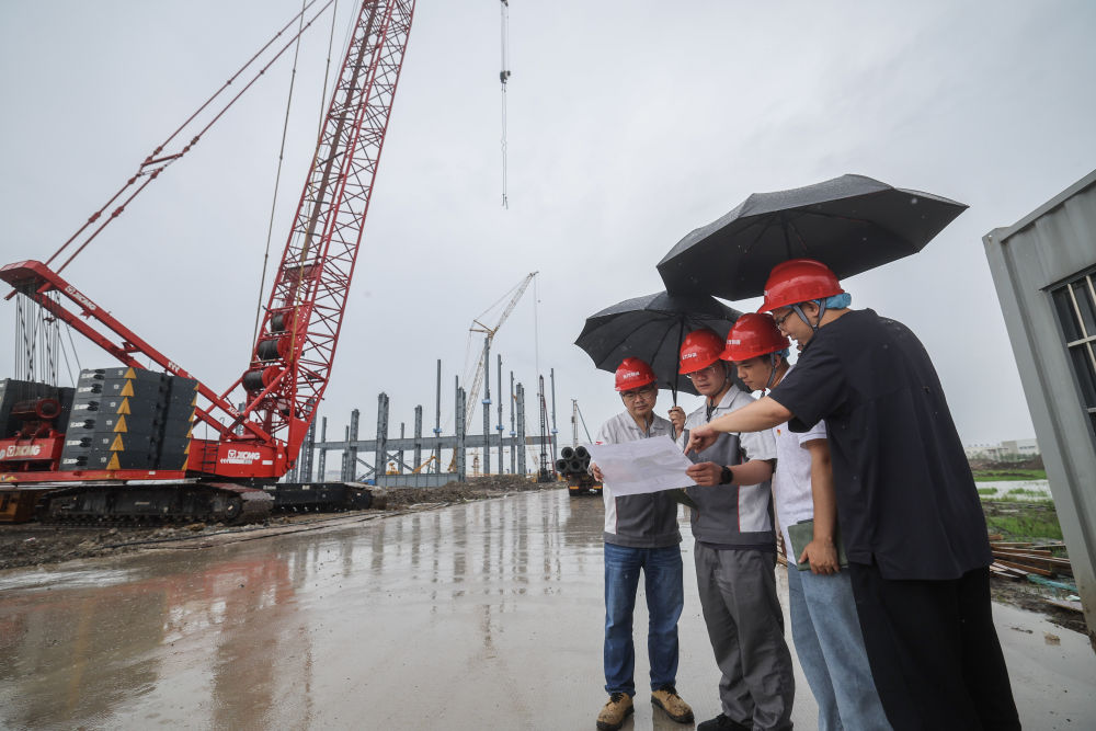 2025年6月10日,在東方特鋼鎳鉻新材智造項(xiàng)目建設(shè)現(xiàn)場(chǎng),浙江省嘉興市南湖區(qū)駐企“紅色專班”黨員與企業(yè)施工方一起查看項(xiàng)目現(xiàn)場(chǎng)推進(jìn)情況。